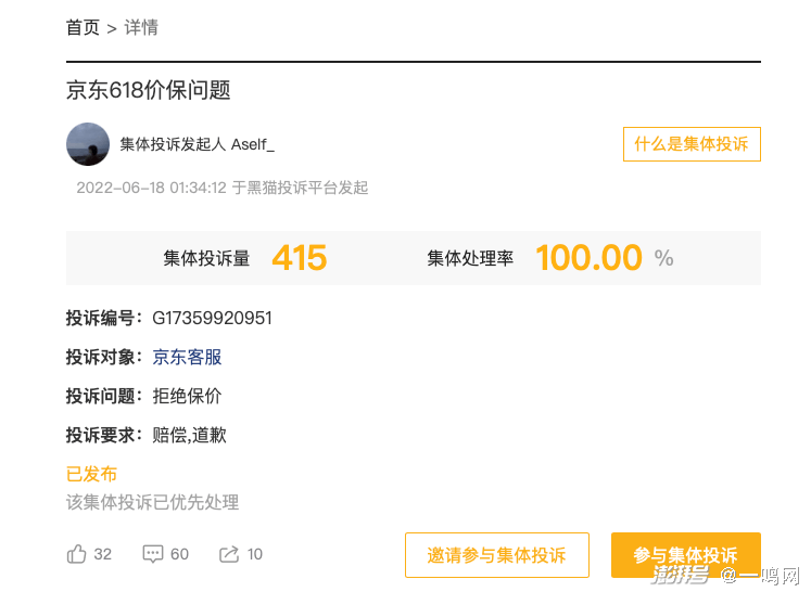 比如在黑猫投诉平台,价保问题冲上了集体投诉的前五