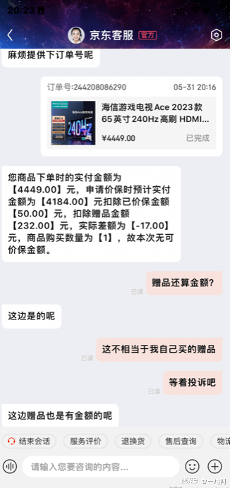 有消费者投诉称,其购买海信电视,说保价6.18,还不到6.18就不给保价了,赠品竟然也算钱,这不就是相当于自己买的吗?自己花钱买的也算赠品?