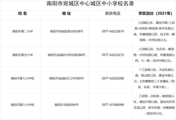 来源/宛城区教体局原标题:《南阳公布城区部分中小学名录及学区划分》