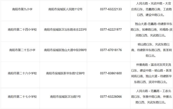 南阳公布城区部分中小学名录及学区划分