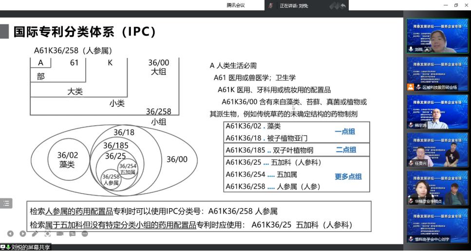 知识产权专场由“科创中国”吉林区域科技服务团、珲春市科学技术协会、吉林省科技创新创业研究会承办,国科(吉林)知识产权运营有限公司检索分析师刘悦主讲《多场景模拟下的专利数据检索》,以专利数据检索为核心,以珲春企业相关技术领域为样例,通过专利信息的构成、专利数据检索的方法和情景模拟三个部分层次递进为企业技术人员讲解专利检索技术。