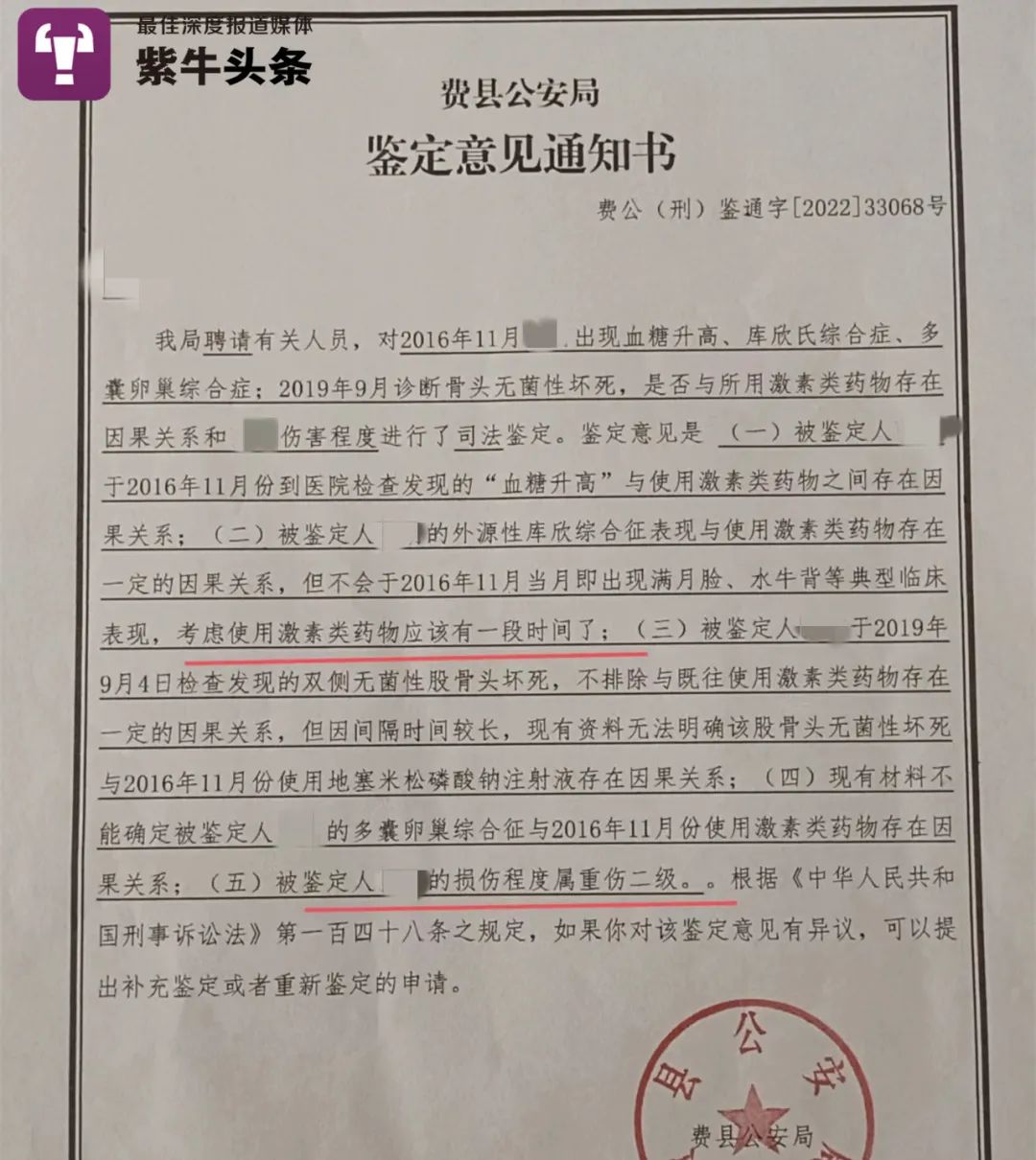 刘畅告诉紫牛新闻记者,她从办案机关得知高某森已招供,“2019年他公开回应称给我使用了11支地塞米松,此次又承认给我用了七八十支。而我从警方得知,其实他从卫生院拿了91支。”刘畅经过计算,觉得高某森在3个月内在其身上使用了70多支地塞米松,“换算成短效的激素大约是7000多毫克。”