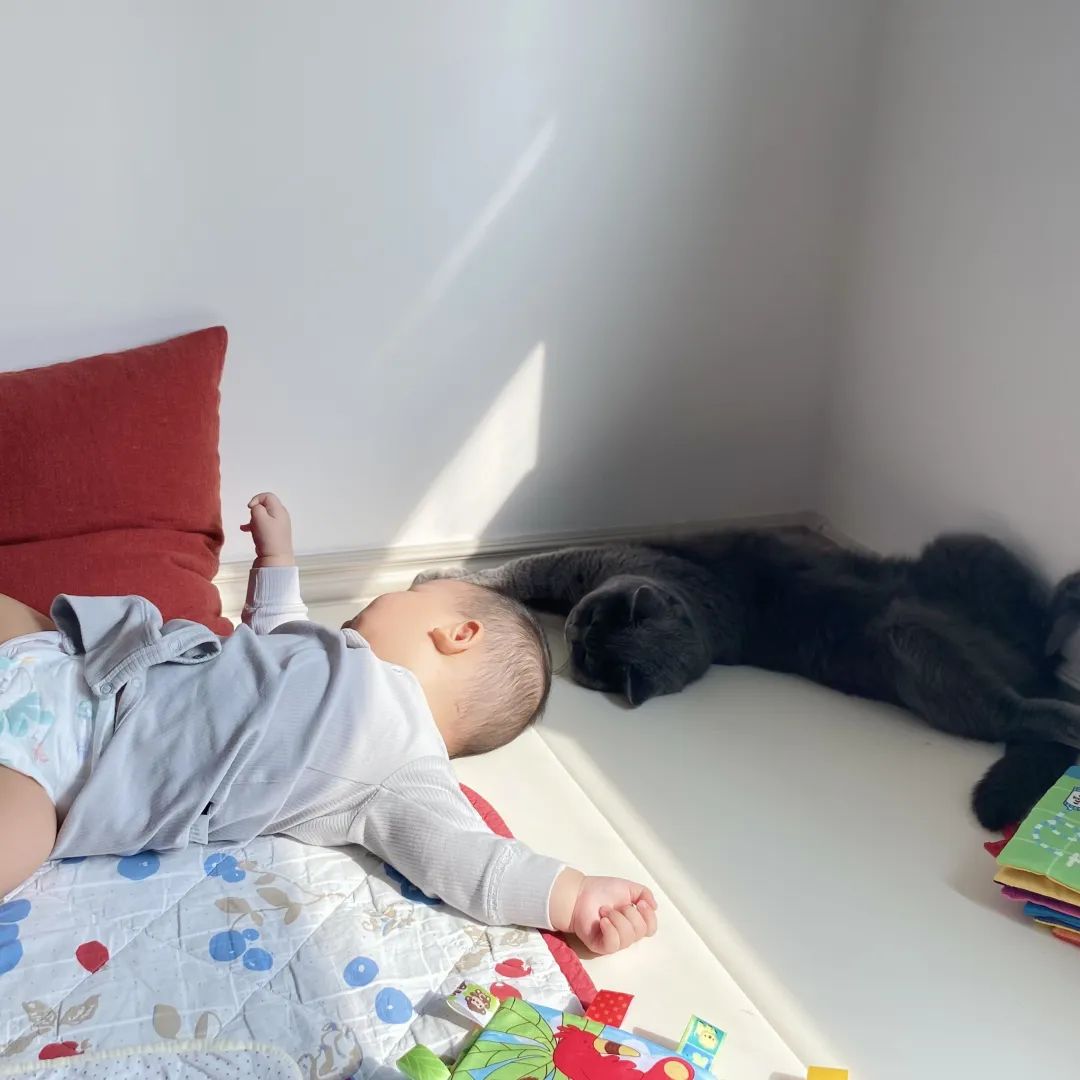 有时候半夜夜奶,迷迷糊糊摸到它在我的旁边睡着了,也不知道什么时候来的。