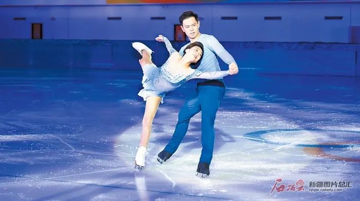 6月25日,“北京冬奥冠军天山行”代表团成员彭程(左)、金杨(右)在新疆冰上运动中心表演双人滑。石榴云/新疆日报记者汤永摄流光溢彩,裙裾飞扬,冰与舞的完美交织让人心潮澎湃。6月25日下午,在新疆冰上运动中心滑冰馆里,来自国家花样滑冰队的冰雪健儿们带来冰舞、双人滑、单人滑等精彩表演,让现场的观众享受了一场精彩绝伦的视觉盛宴。当日,“北京冬奥冠军天山行”活动在这里启动。