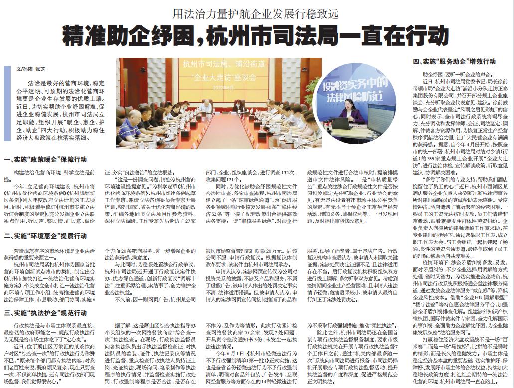 原标题:《用法治力量护航企业发展行稳致远,精准助企纾困,杭州市司法局一直在行动》