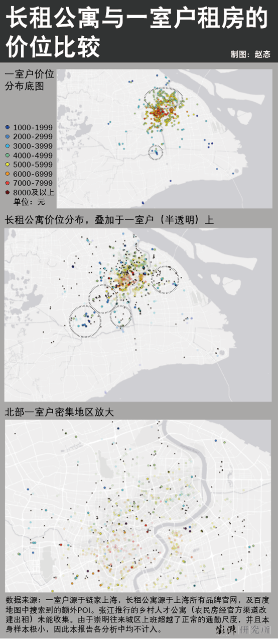 从年轻人对普通住宅的偏好可知,长租公寓并非会因为可以单独居住的特点而被认为是一室户住宅的竞品,相反,它是一室户的补充。如果以上海为案例,通过对比它们的分布和价位,可以看到一种互斥但也互补的关系。