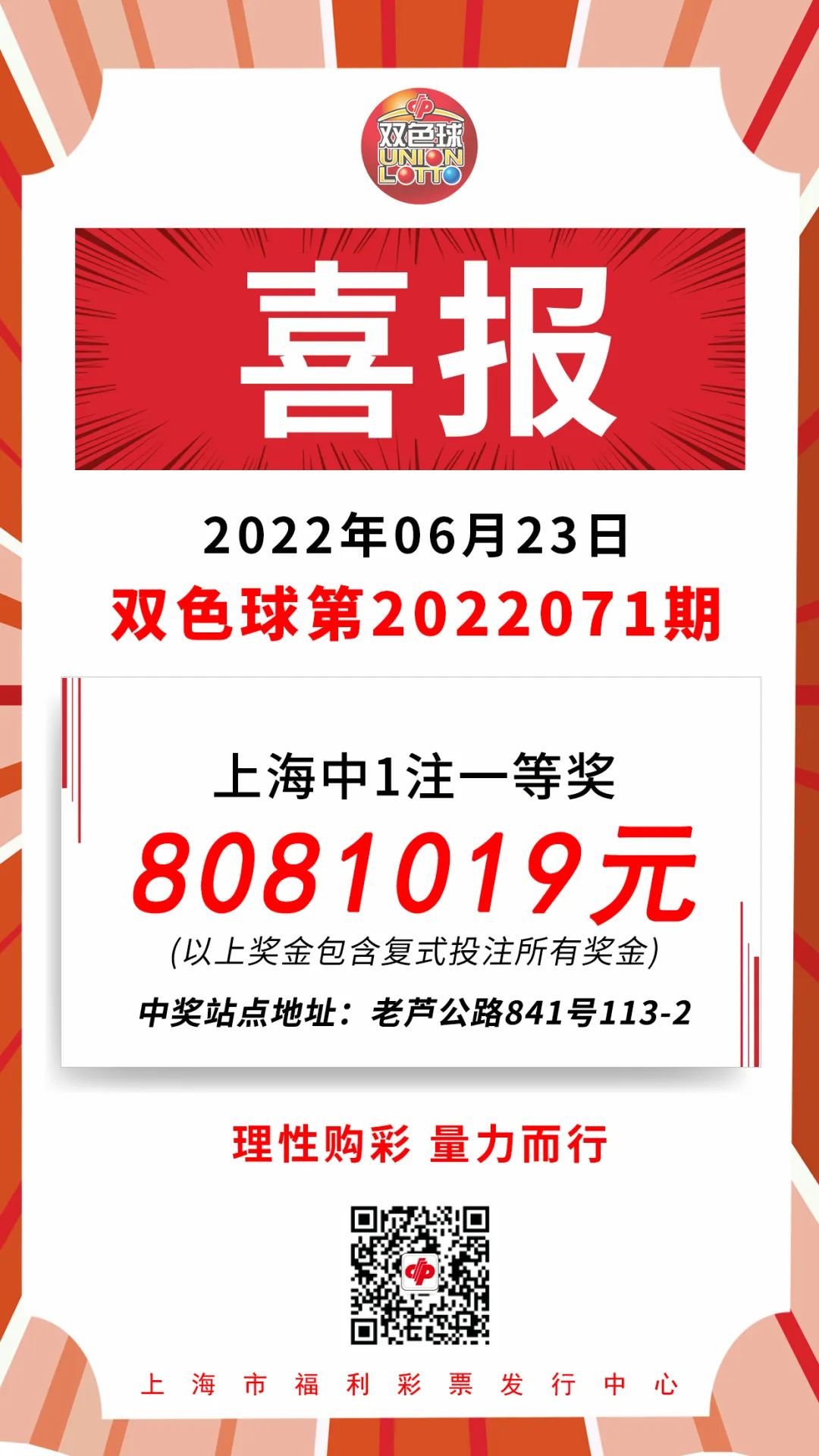 总奖金808万元!上海再迎双色球1注一等奖
