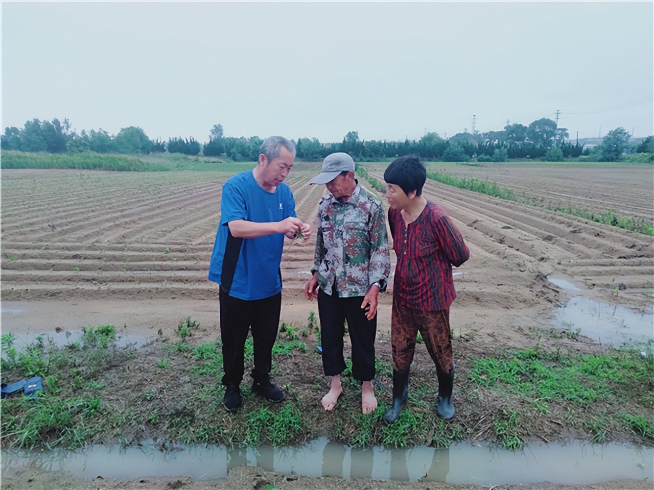 持续强降雨导致我市部分低洼地块出现积水,如果不能及时排除,将影响部分农作物生长,特别是玉米、大姜、花生等作物。乳山市白沙滩镇六村屯村有部分种植花生的低洼地块,降雨过后出现了积水。得知情况后,6月28日上午,乳山市农业农村事务服务中心农技人员一行四人来到这里,现场指导农户开展清沟排水、中耕培土。