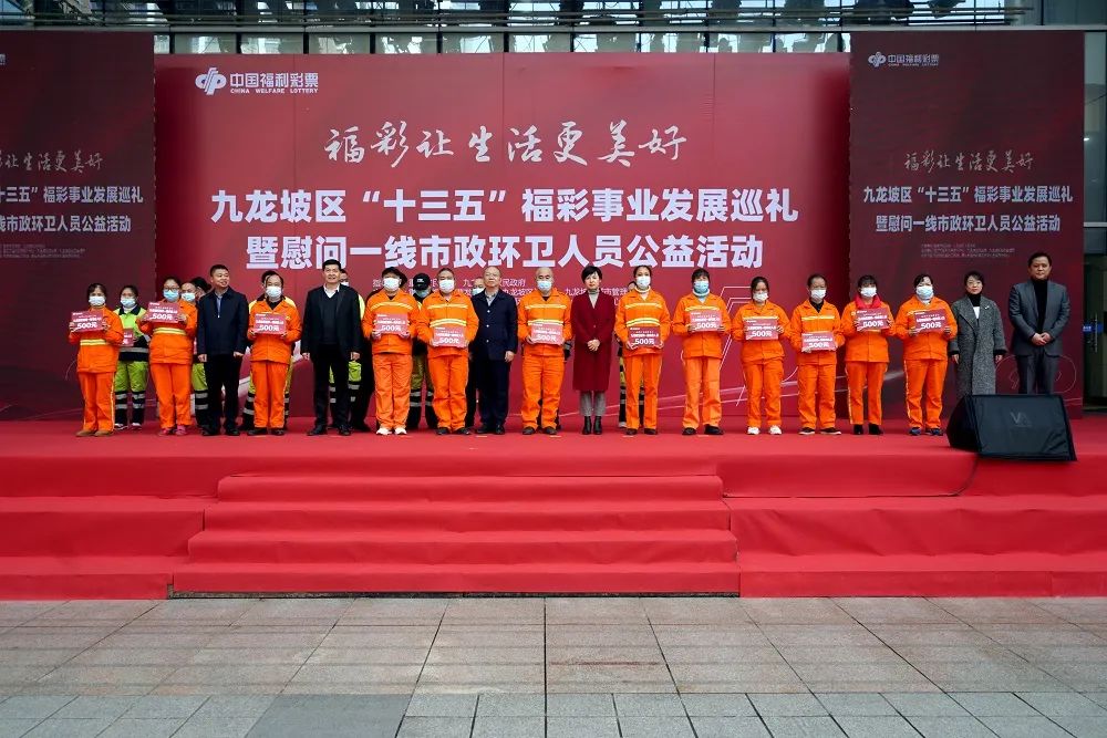 2021年,“福彩有爱·送福到家”公益活动慰问九龙坡区一线困难市政环卫人员,并发放慰问金。(资料图)重庆市福彩中心供图截至2021年,重庆福彩累计销量587亿元,募集公益金198亿元,除了上交中央级彩票公益金外,也在全市社会福利、社会公益和社会慈善事业方面发挥了巨大作用,累计支持全市超过1万个社会福利和公益事业项目。
