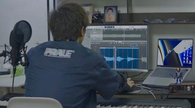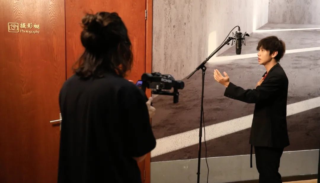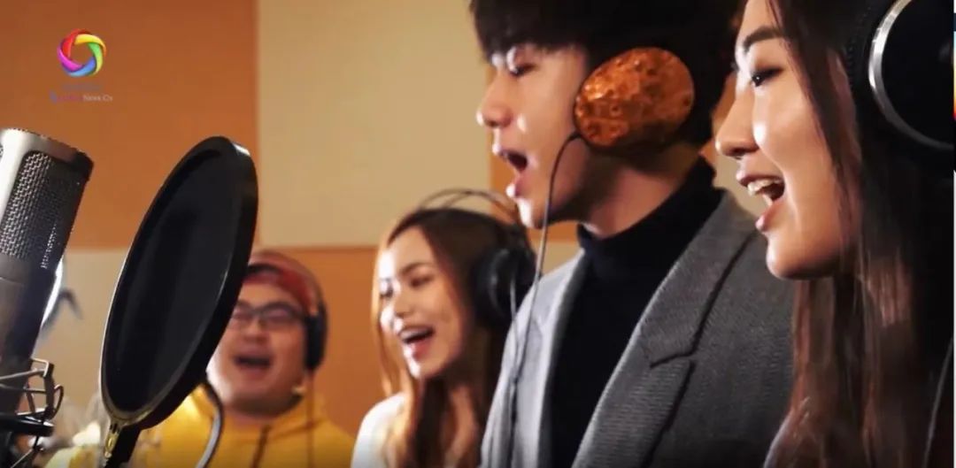 江阳在摄影棚拍摄MV现场江阳把示范视频发给同学们,并与他们沟通如何演唱副歌部分。“他们都是爱国爱港的好青年,也都是我很好的朋友,在我邀请的时候立刻答应了,有的同学为了几秒钟的视频画面,花了好几个小时进行录制。”