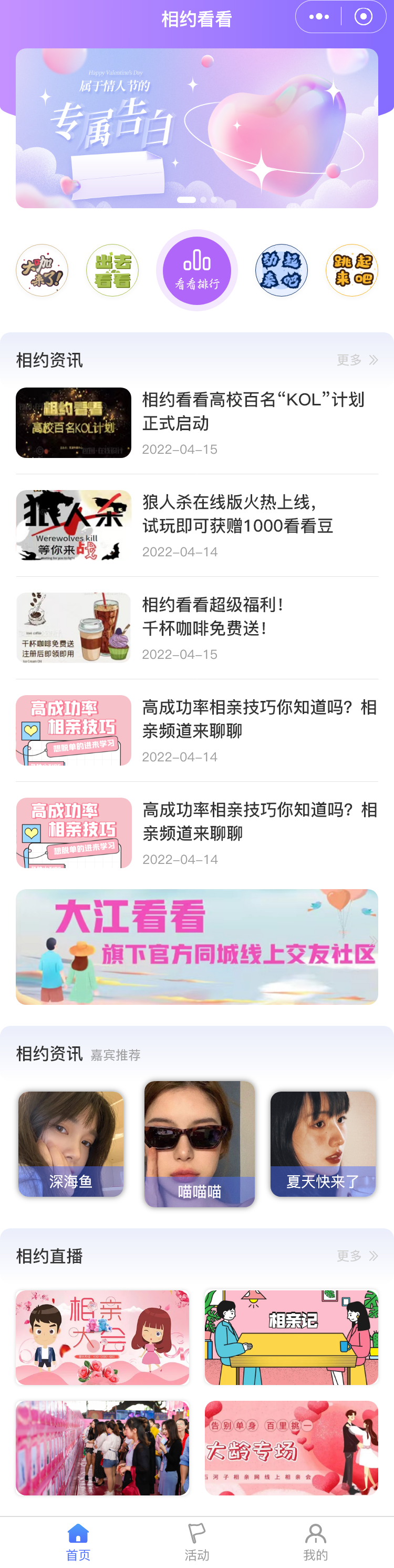 网上交友平台,看不见、摸不着,不靠谱,也许你期待本土的相亲交友平台,让共同爱好的我们,玩在一起,乐在一起。相约看看(交友)满足您的一切个性化需求。