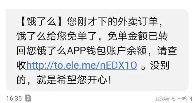 据了解,饿了么此次推出的免单活动,一开始并没有过多的官方宣传,而登上热搜,是因为有很多用户突然收到了饿了么的免单短信,并快速收到订单退款。