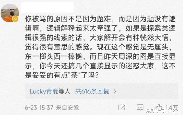 有消费者表示,官方将答案“根号二”中的“二”解释为棚子下方的“两个人”显得毫无逻辑且过于牵强,同时,前一天提供的时间线索对受众产生了明显的导向作用。