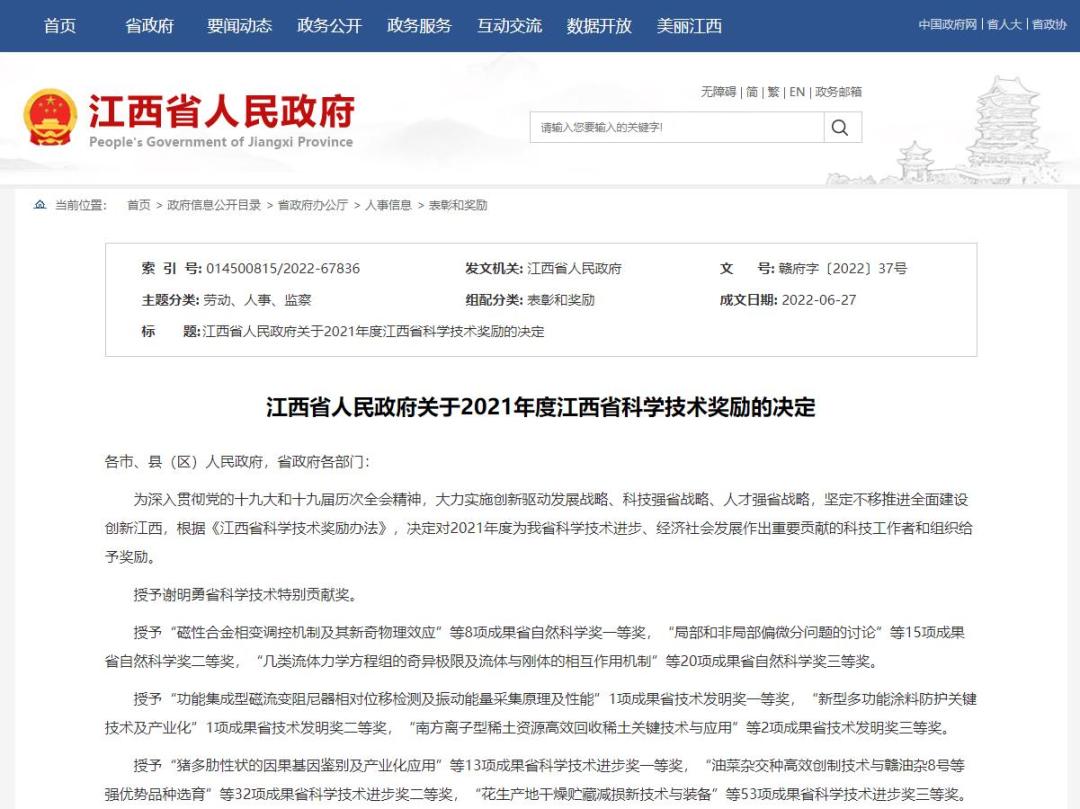 原标题:《2021年度江西省科学技术奖揭晓》