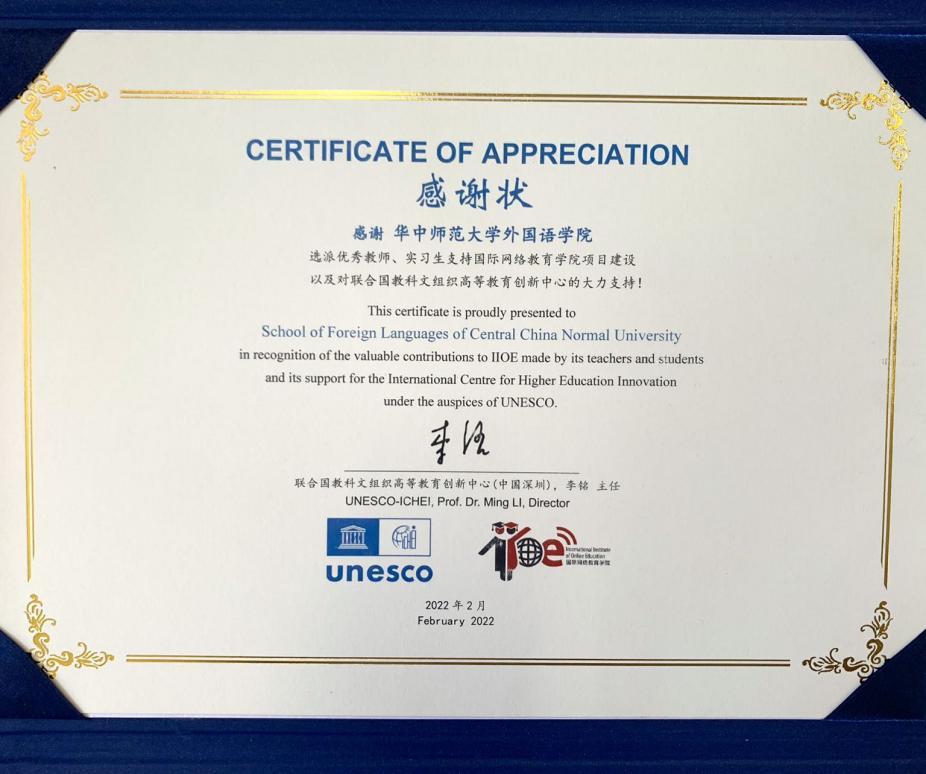 联合国教科文组织教育创新中心感谢信