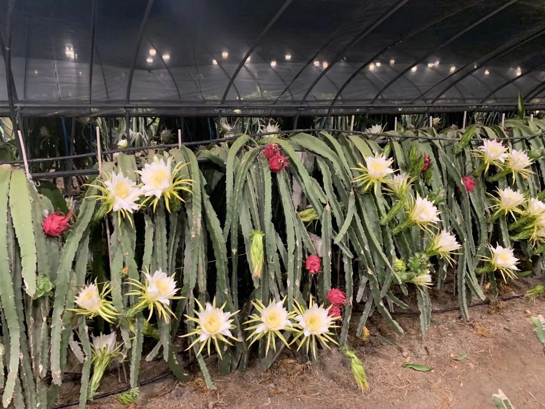 据了解,火龙果花与昙花是“近亲”,同样只在夜间开放,日出之前便会凋谢。火龙果花不仅具有观赏性,还可以食用,可泡茶、凉拌、煲汤,具有清热润肺、滋补养颜等功效。