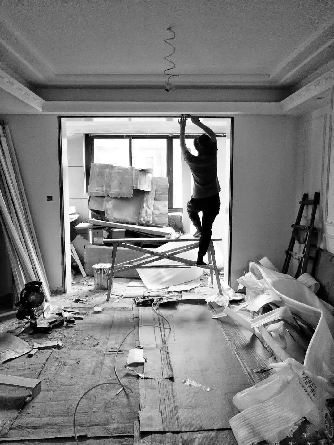 作者自述:一位装修工匠在家装工地干活,其劳动的身影恰似跳着舞蹈一般。此时此刻的我,看到这一场景,真觉得这是一幅显得格外自然生动优美的舞姿之画作。这也无疑地更显示着,人间最美的舞姿应该属于劳动者们这一颠扑不破的真谛。其实这些劳动的人们,压根儿就不知道也不会去关注自己劳动的身影有如此的美妙,他们只知道也只会去关心自己及家人们在琐碎的日子里如何去挣更多的钱过好平凡的生活。而这张本人抓拍于三年前的取题为《家装工地的舞者》的照片,理当可以作为印证。由此,我不禁想起马克•吕布拍摄的《铁塔上的舞者》照片,并将与本人的这张《家装工地的舞者》照片相比较,越看越觉着他们之间有太多的相通之处,似乎到了很相像的地步。不过后者是世界摄影史上记载的一幅名作,我拿它相比有点奢望了,但学习他总还是可以的吧。在此更值得庆幸的是,自己能巧遇这种场景,同时能顺手抓拍到这一稍纵即逝且难得的画面。凡哥点评:照片不错,但跑题了。好照片不怕放,放得越久越有味道。等到合适的时机拿出来才顺理成章。