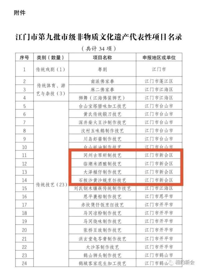 原标题:《新会区6个项目,入选第九批江门市级非遗名录!》