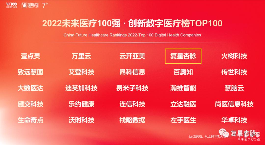 原标题:《委员企业 | 复星杏脉再次入选未来医疗百强,荣登中国创新数字医疗榜》