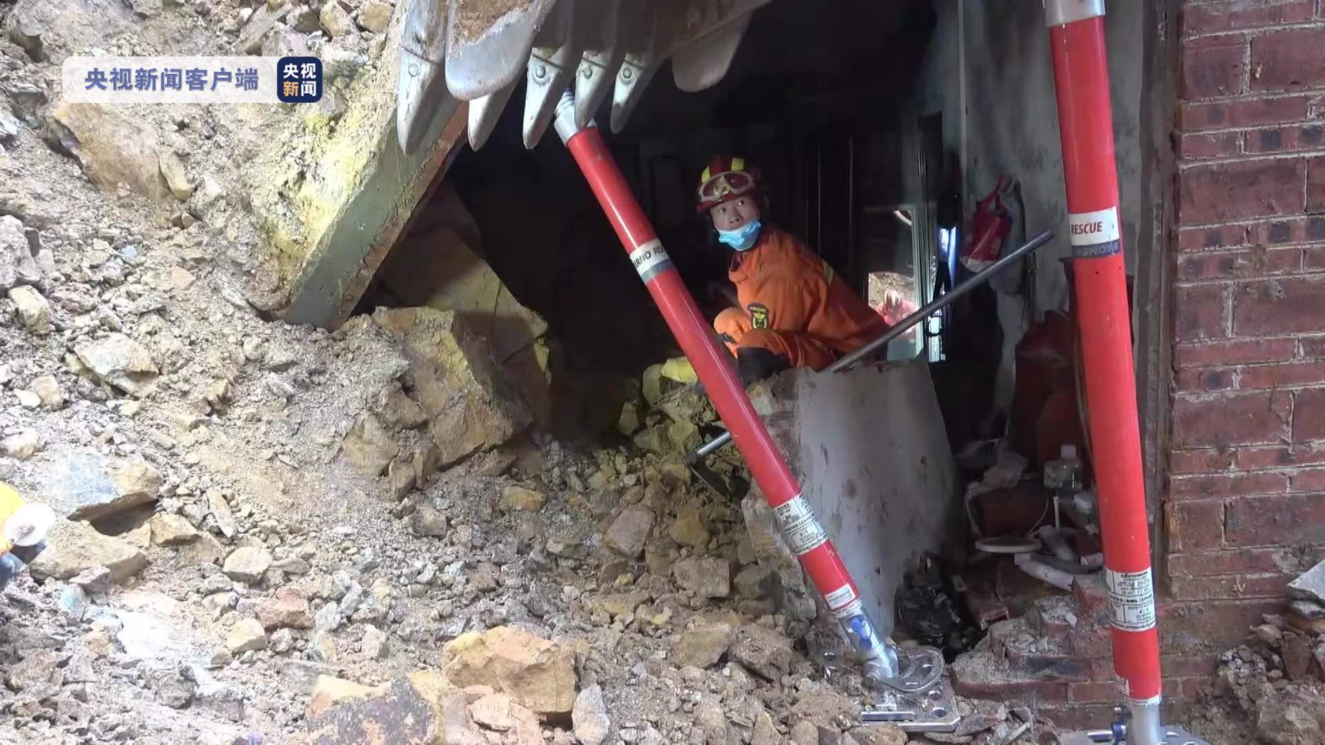 救援人员立即使用生命探测仪、铁铲、锄头等工具开展救援行动。当天早上9时50分,因民房后山存在二次塌方风险,危险性大,现场指挥部决定先利用钩机把民房后山周边的泥土挖开,确保安全。