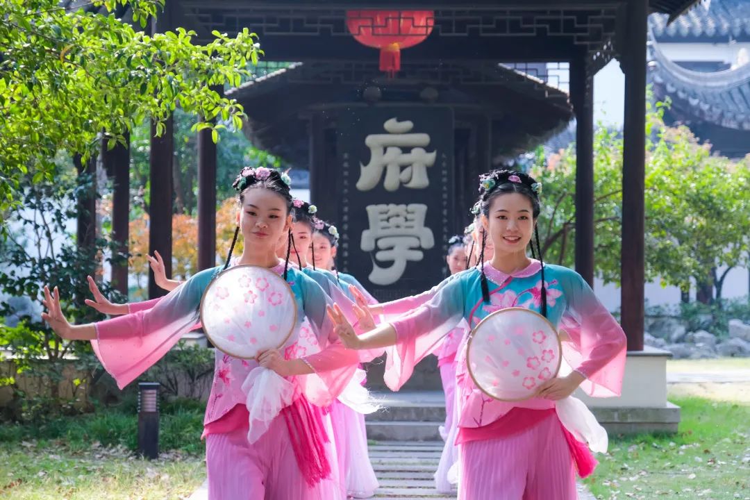 江苏省苏州市通过开展社团活动,引导学生走近家乡、走近“世遗”和“非遗”,成为江南文化和府学文脉的传承人和代言人。图为苏州中学“梦之队”舞蹈社团在千年苏州府学用舞蹈演绎“苏绣”文化。