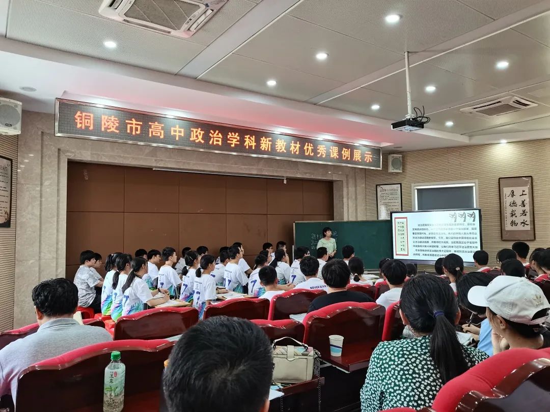 聚焦新课程、新教材、新高考,安徽省铜陵市持续开展普通高中新课程新教材教研系列活动,促进教育教学质量再提升。图为铜陵市高中政治新教材优秀课例展示活动现场。