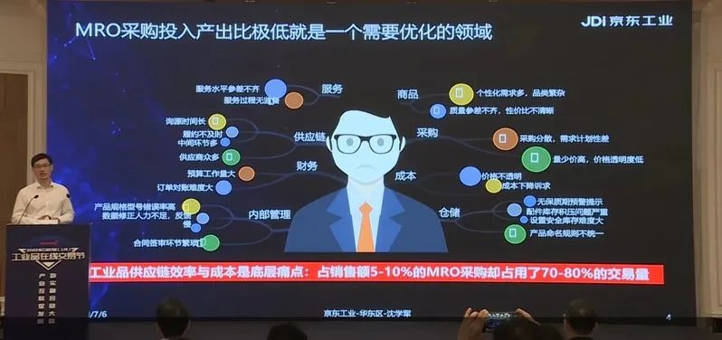 工业企业还有MRO痛点。MRO是指生产中用于维护、维修、设备运行的物料与服务,如手套、工业黏合剂、紧固件等,不可或缺,却高度零散琐碎,采购值可能不足企业采购总额的8%,却往往要消耗采购部门6成以上工作量。