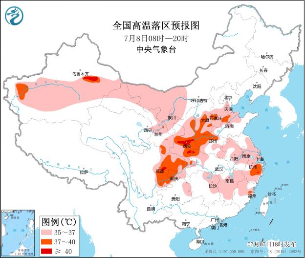 ■ 中央气象台7日继续发布高温黄色预警:预计8日白天,新疆南疆盆地、内蒙古西部、西北地区东部等地有35℃以上高温,其中,吐鲁番盆地和南疆西部、陕西中南部等地部分地区最高气温37~39℃,局地可达40℃以上。