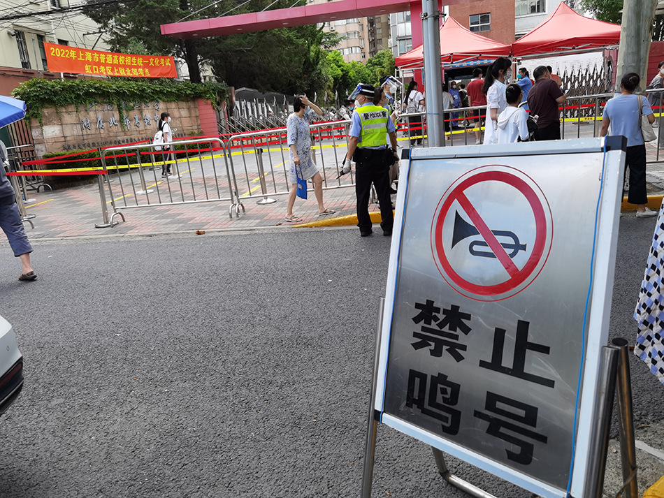 上海高考|外语笔试含听力测试,考点外红色“静”字标识明显