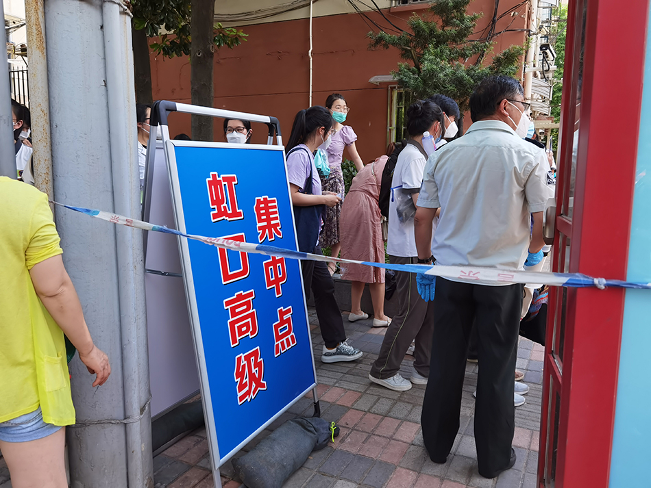 2022年7月8日,上海财经大学附属北郊高级中学考点外设立了不同学校的集中点。 本文图片均为澎湃新闻记者 韩晓蓉 摄