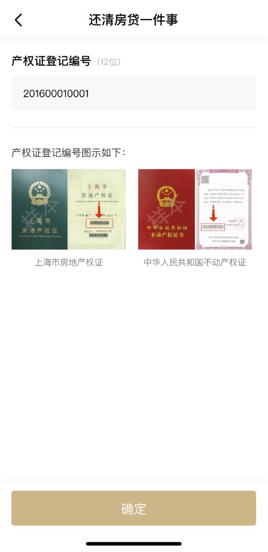 输入产权证登记编号,点击【确定】,校验通过的,进入抵押信息页面。