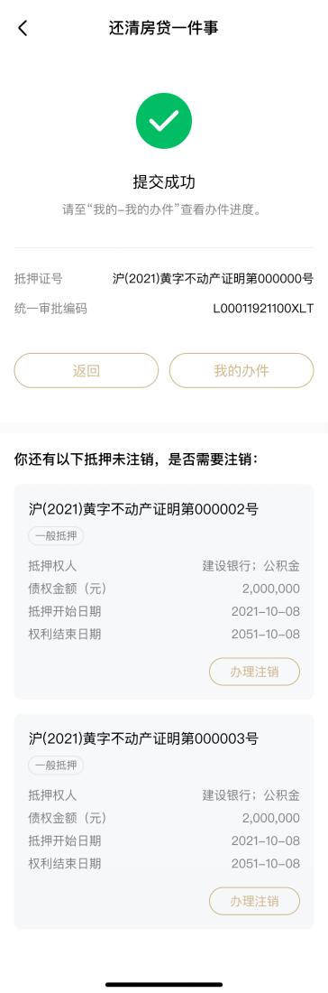 如存在其他抵押信息,可继续按需办理相应注销业务,并产生新的办件。