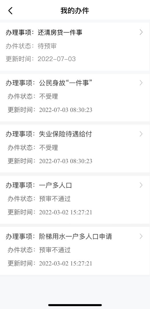 点击【办理事项】进入办件详情页,可查询不同单事项的办件进度。