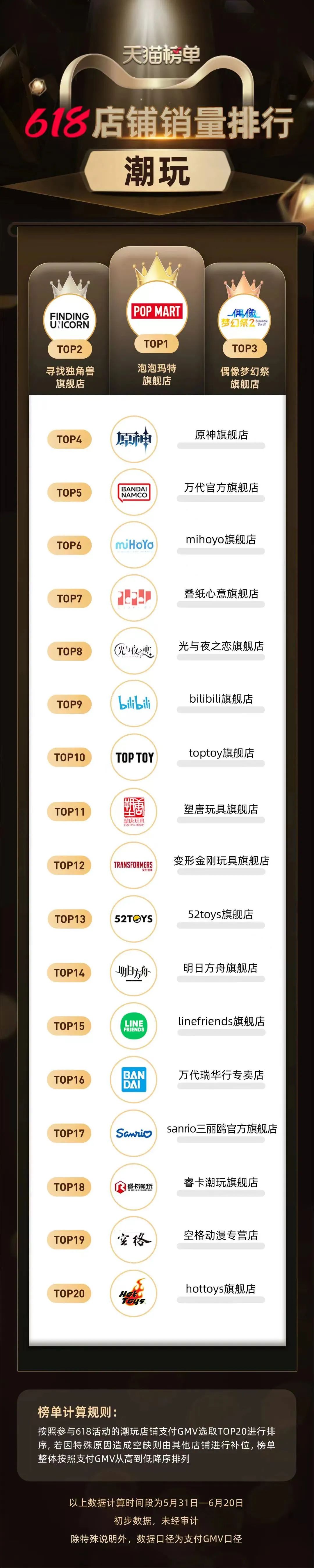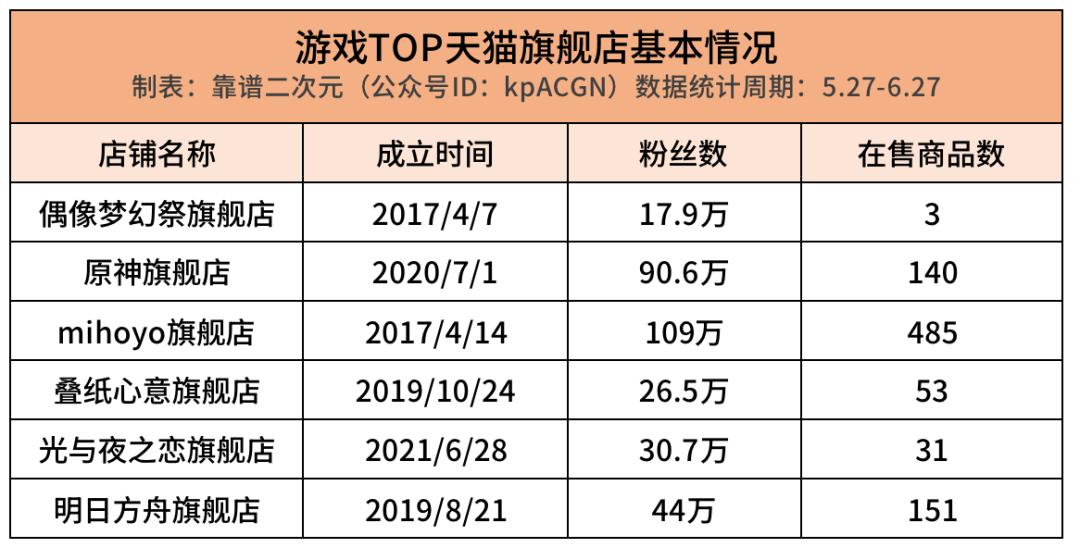 注:店铺综合数据受衍生品上架时间影响较大,本文结论和观点形成自5月27日-6月27日共30天的数据,并且只针对6家旗舰店内售卖的衍生品。