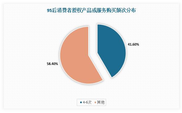 根据观研报告网发布的《中国动漫衍生品行业发展趋势研究与未来投资分析报告(2022-2029年)》,58.4%的95后消费者购买授权产品为4-6次。Quest Mobile发布《2021手机游戏人群洞察报告》数据显示,2021年6月手游用户近50%付费用户年龄在30岁以内,且24岁以下用户(97后)接近三成。