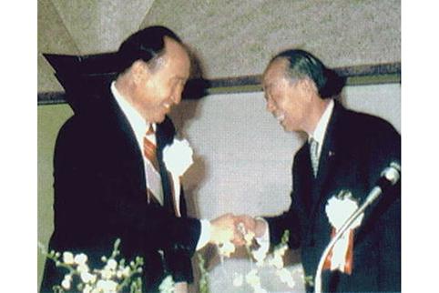 日本前首相岸信介(右)与韩国“统一教”创始人文鲜明(左)