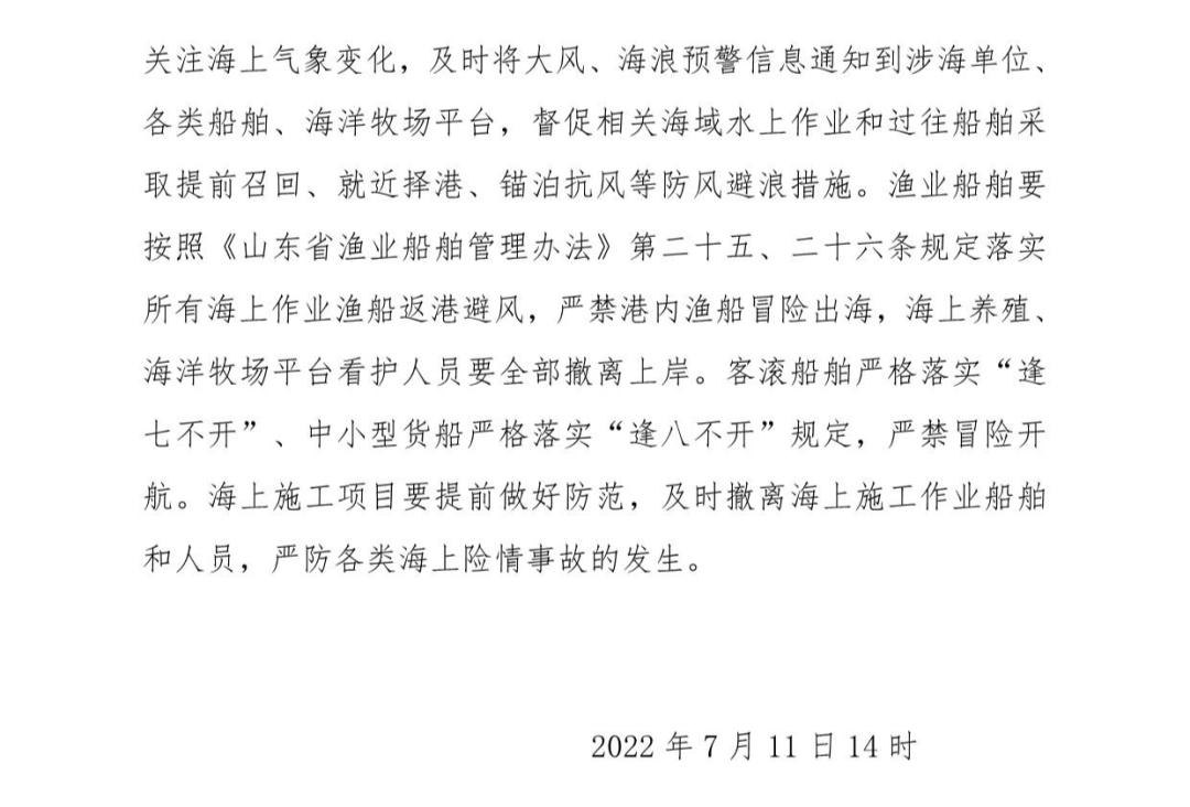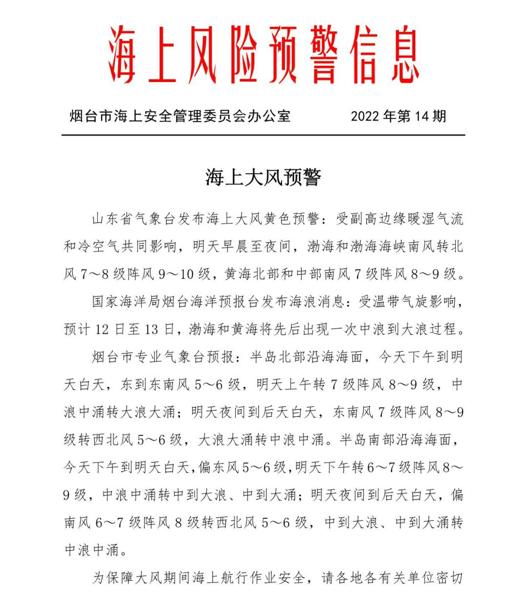 烟台市海上安全管理委员会办公室发布海上大风预警