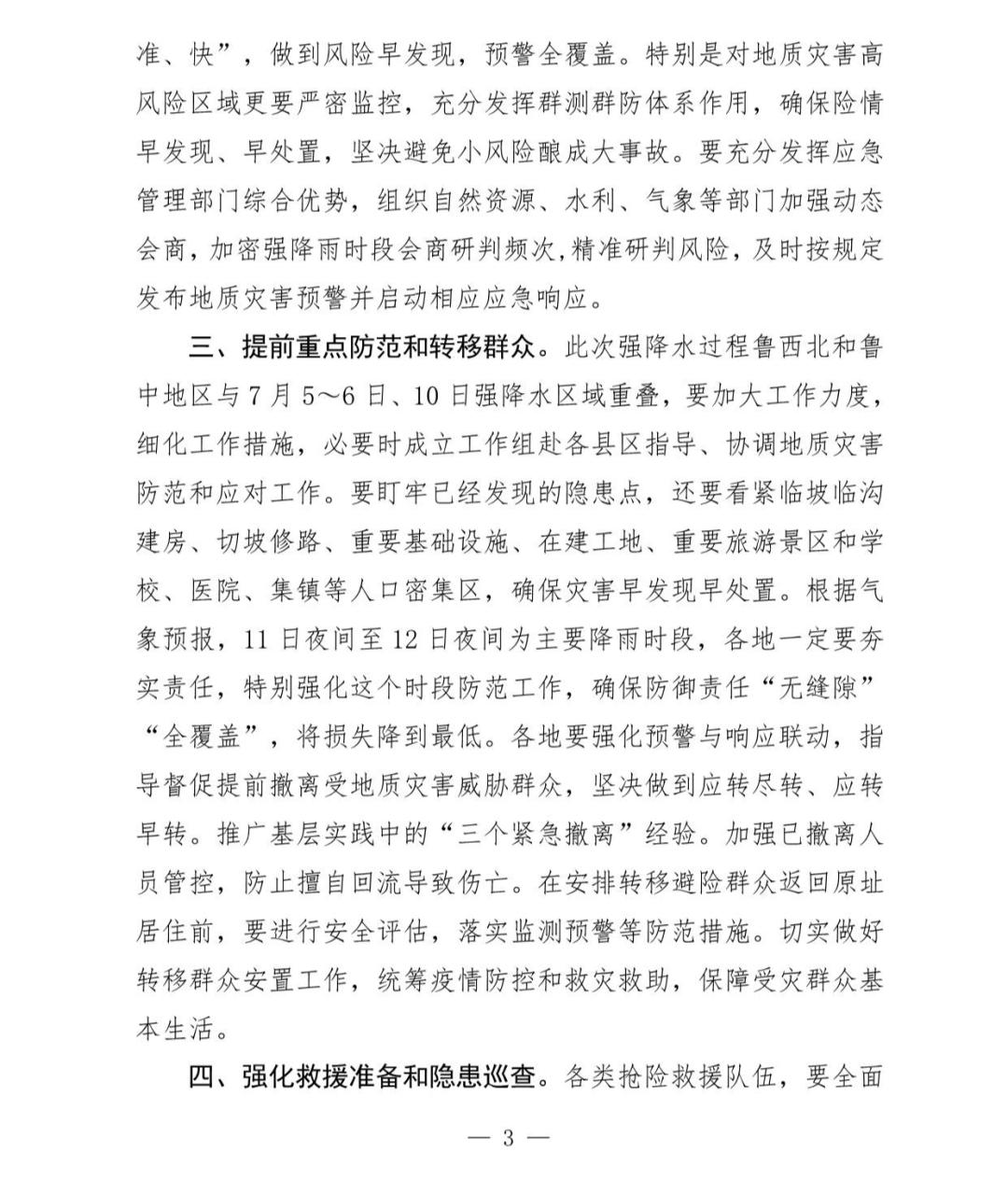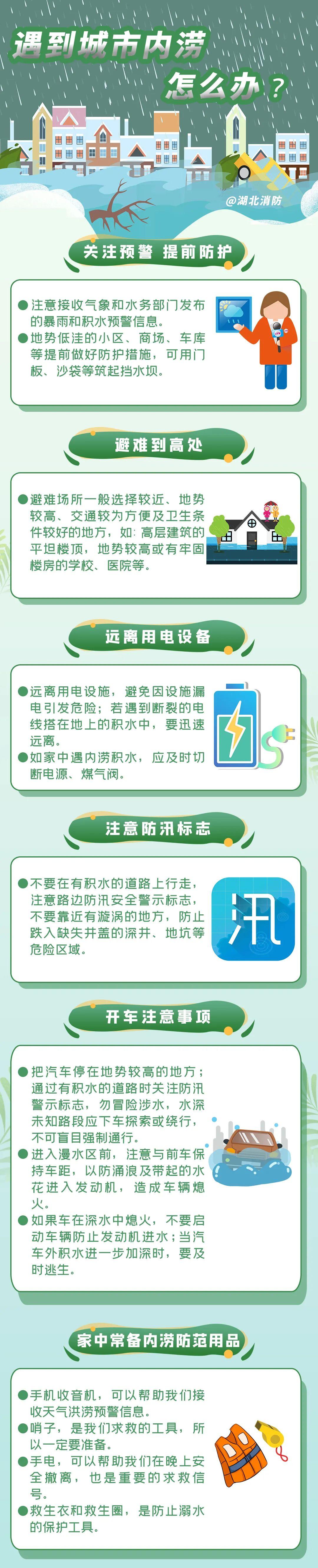 4.注意防范城市和农田内涝,同时防范强降雨可能引发的山洪、中小河流洪水、地质灾害。