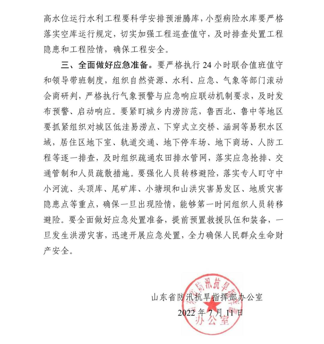 经烟台市防汛抗旱指挥部综合研判,本次降雨强度大、分布范围广、致灾性强,特别是我市西北部地区主降雨区与前期降雨较多区域存在高度重合。且当前我市地表蓄水较历年同期偏多4成以上,水利工程普遍高水位运行,拦蓄作用减弱,防汛形势严峻复杂。鉴于我市过去15天累计降雨量已超100毫米,根据《烟台市防汛抗旱防台风应急预案》规定,烟台市防汛抗旱指挥部决定于12日9时10分启动防汛III级预警。
