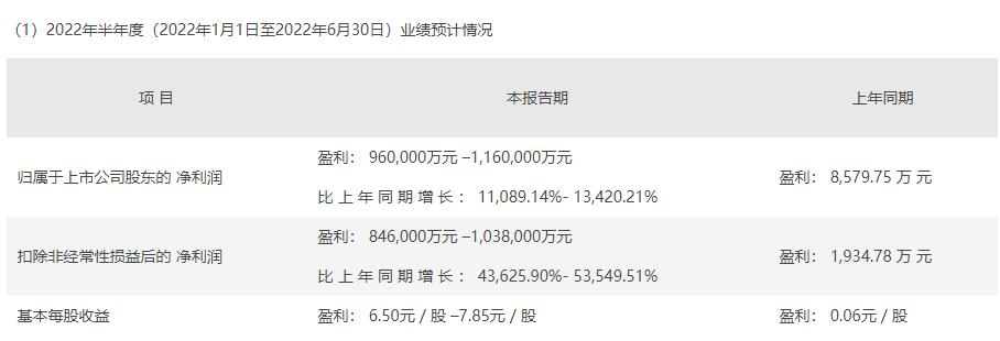 关键是天齐今早刚发布了亮眼的半年报预告,上半年净利润介于96亿元-116亿元之间,同比增幅达到111倍-134倍;扣非后净利润为84.6亿元-103.8亿元,同比更是增长约436倍-535倍。