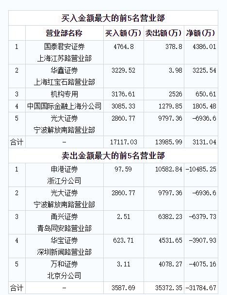 龙虎榜出逃3亿