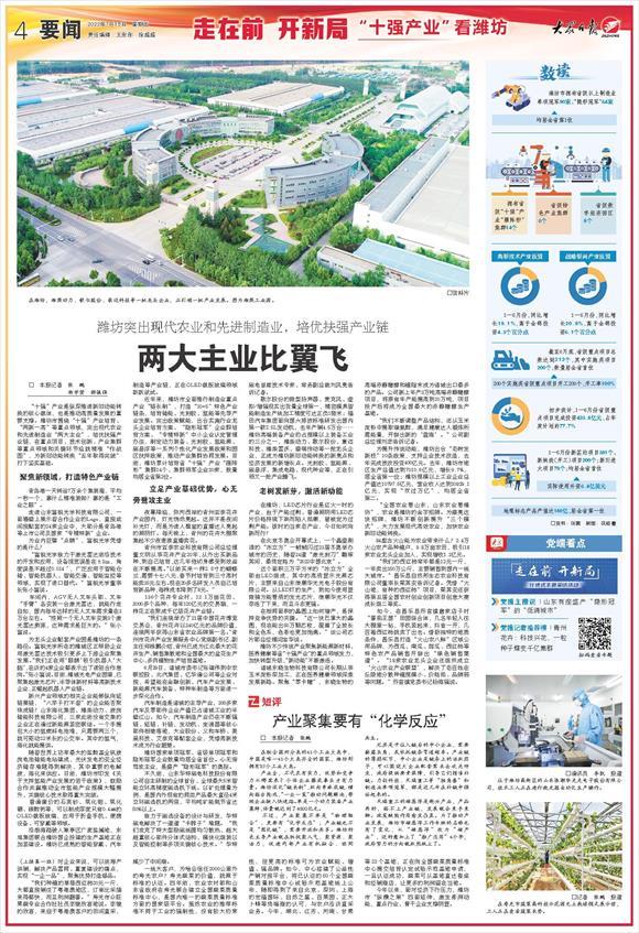 潍坊突出现代农业和先进制造业,培优扶强产业链 两大主业比翼飞