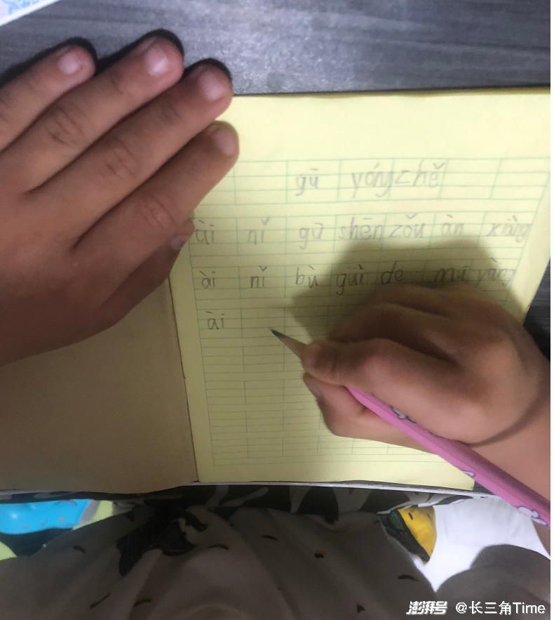 在孩子们心中,孤勇者,俨然已经成了神。就算写拼音,也要一个字一个字背下歌词。