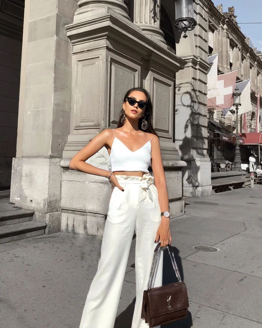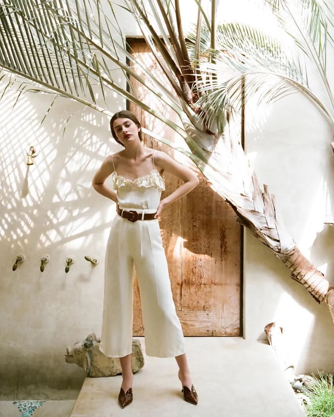 夏天当然少不了吊带啦,梨型身材的集美再配上一条微微阔腿的小白裤,遮肉不显胖,还清爽到炸裂~