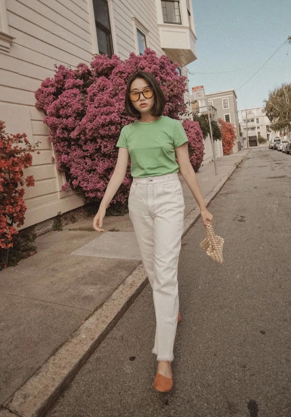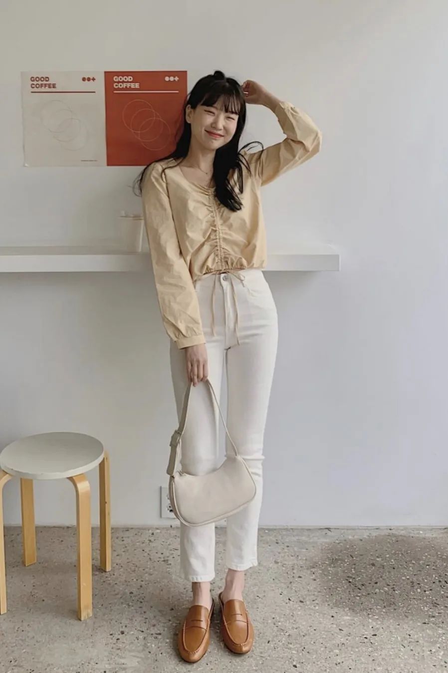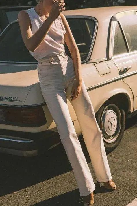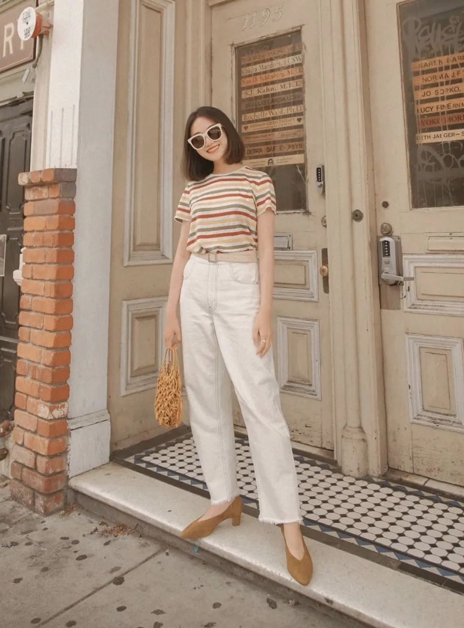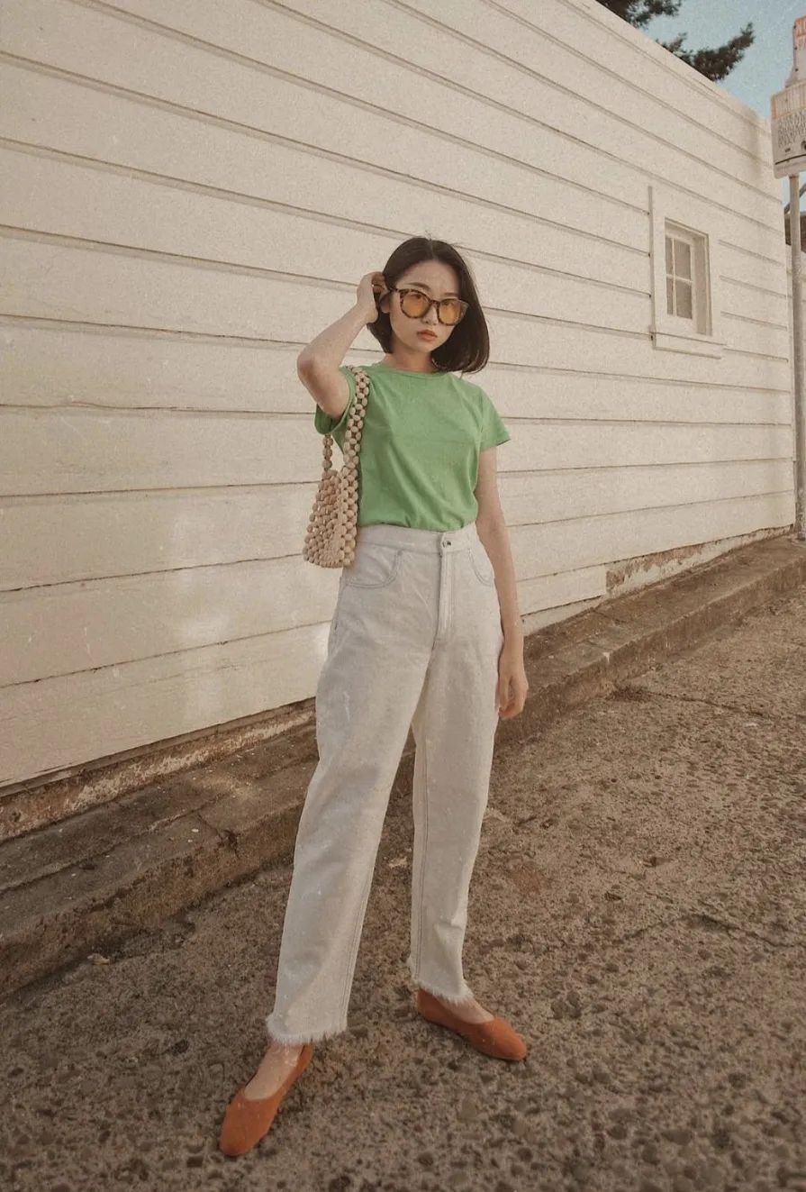 最后要注意的一点是,小白裤最好选择高腰裤头,显腿长效果一流,而且不会给人一种“邋里邋遢”的感觉~