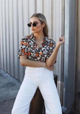 FOOL‘S DAY小白裤和印花衬衫也是绝配,像是在白布上作画一样,充满了诗意和浪漫~
