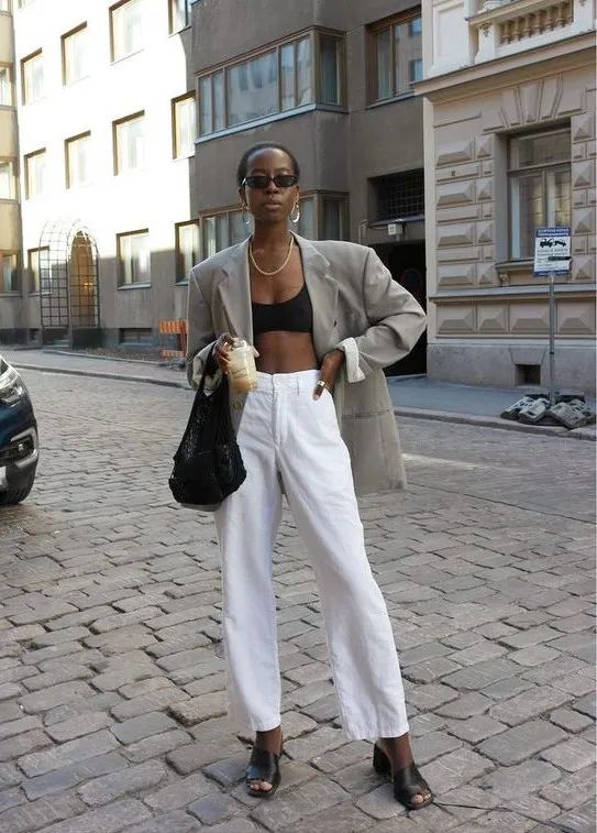 没想到吧,小白裤与剪裁利落的西装也能配一脸,小清新与大女人风的结合,简洁干练,又不乏英姿飒爽~这一组合还超级适合通勤。