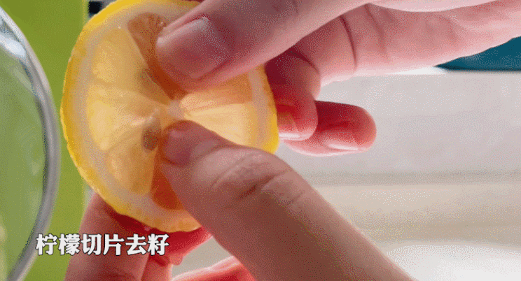 2. 用食盐搓洗柠檬表面,冲净后切片去籽