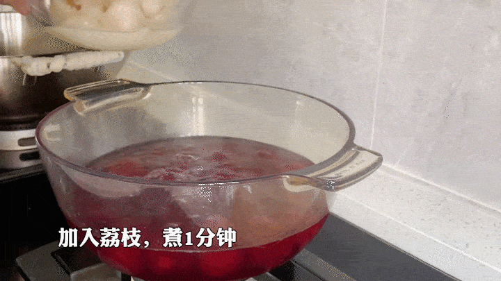 5. 加入荔枝,煮1分钟