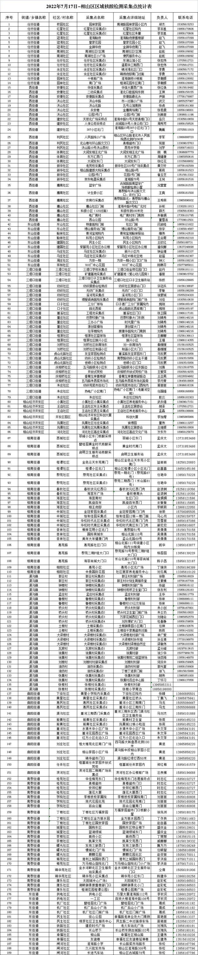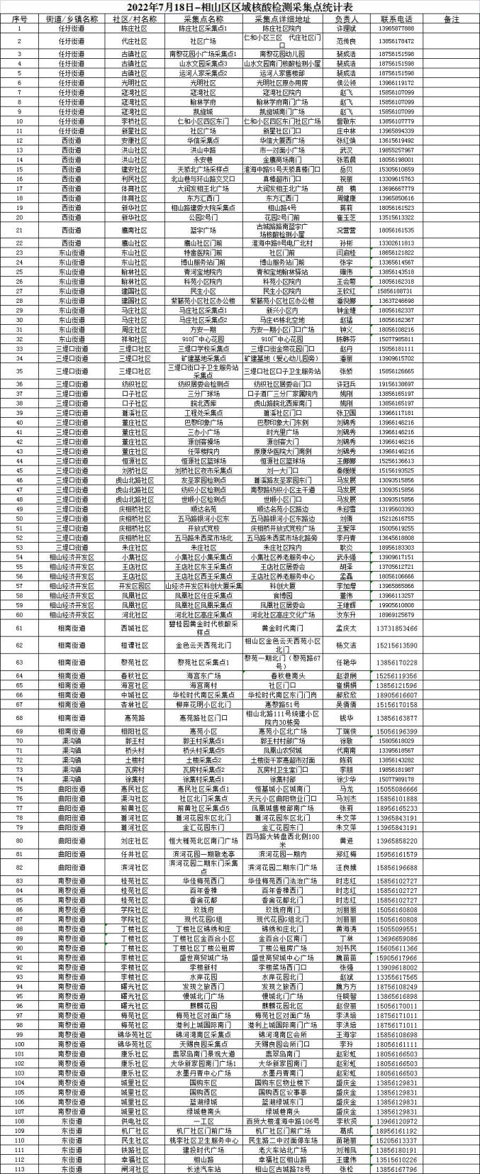 7月17日、18日两天,全区分别启用核酸采样点189个、113个,方便辖区居民就近采样(采样点名单附后)。